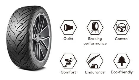 回転方向を指定することによって、タイヤの直線加速性能を向上させます。 ウェット時の排水性能も向上。