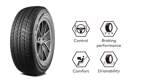 氷雪路面によく働く上層部とタイヤブロックの剛性を保つ下層部のダブルトレッド設計を採用しています。